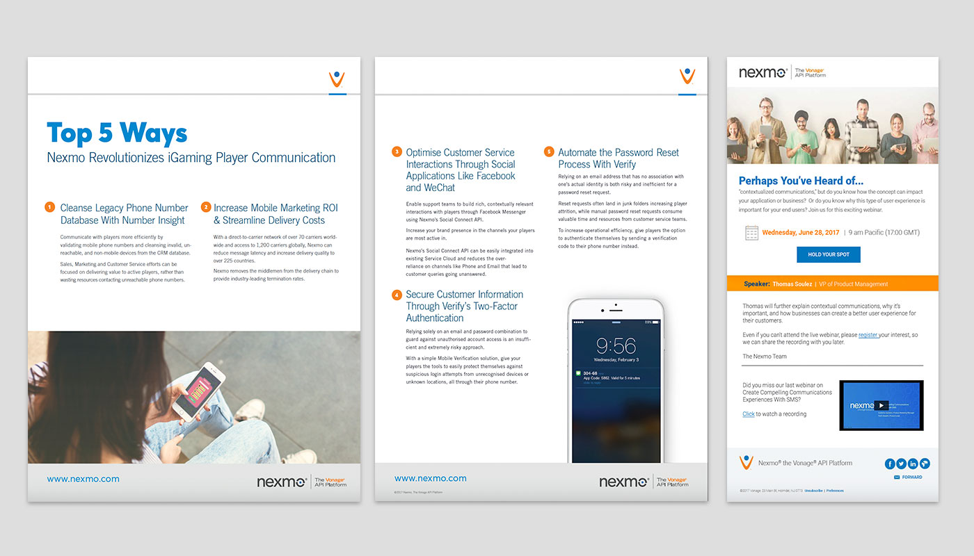 In 2019, with the rebranding of Vonage, our team facilitated the seamless integration of Nexmo into the new Vonage brand framework as the Vonage API Platform.
